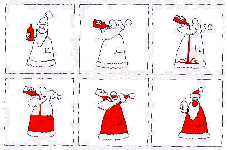 Christmas card Le père Noël blanc avec une bouteille de mondeuse rouge et le père Noël rouge avec une bouteille de mondeuse vide!